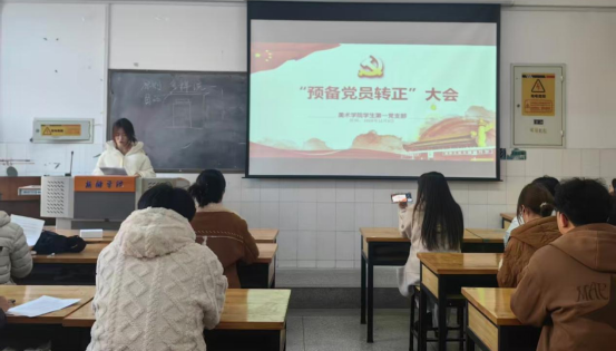 为进一步加强党员队伍建设,夯实党建工作基础,2025年12月3日,美术学院学生第一党支部在A10-407教室召开2025年下半年预备党员转正支部大会。