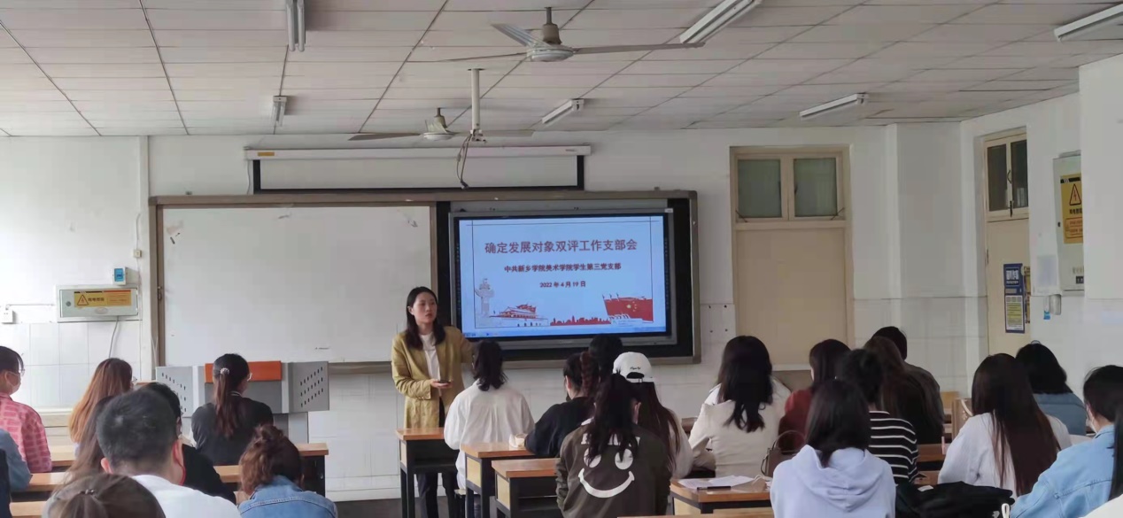 为认真贯彻从严治党的精神,严格落实“双推双评三全程”的工作方针,严把“入口”关,确保发展党员的质量。中共新乡学院美术学院第三学生党支部于2022年4月19日上午在A10-308召开了确定发展对象双评工作会。