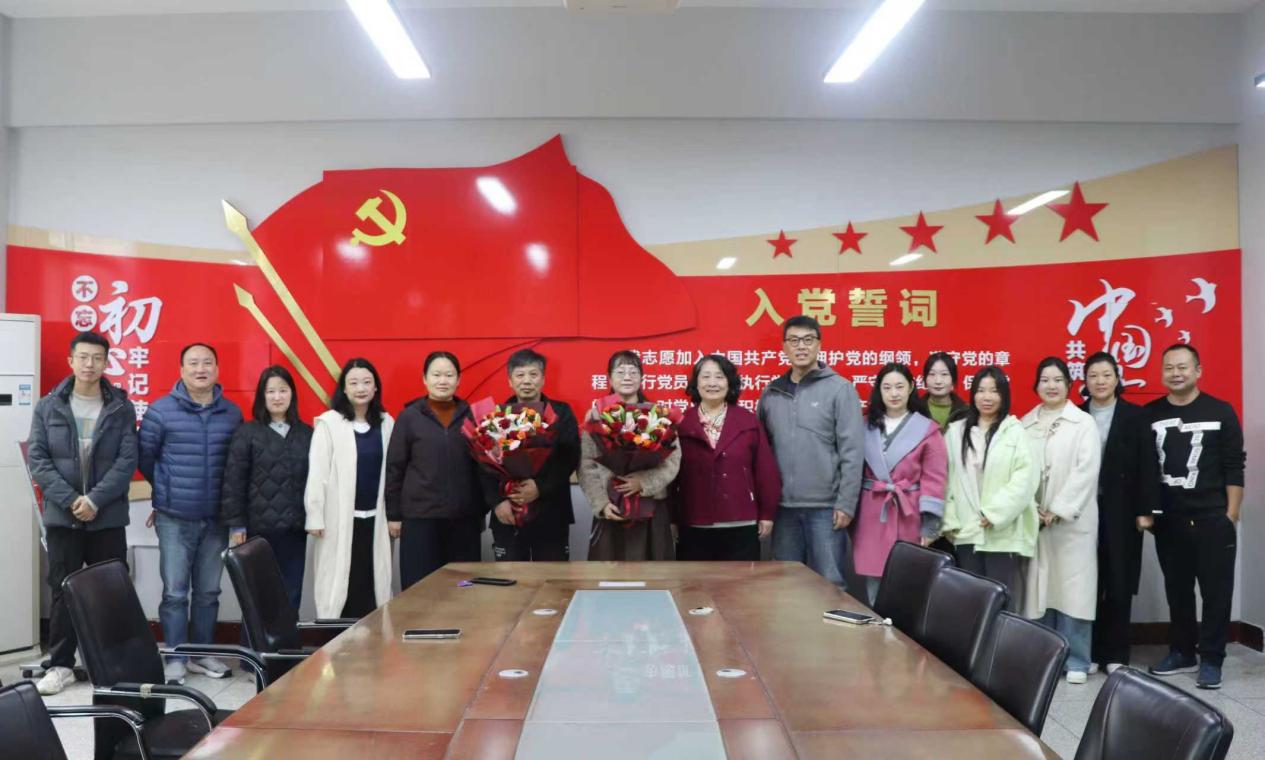 学院党委书记李秀霞代表学院及领导班子,向李孟银、顾卫东老师献花颁发荣休纪念品,全体参会人员合影留念。