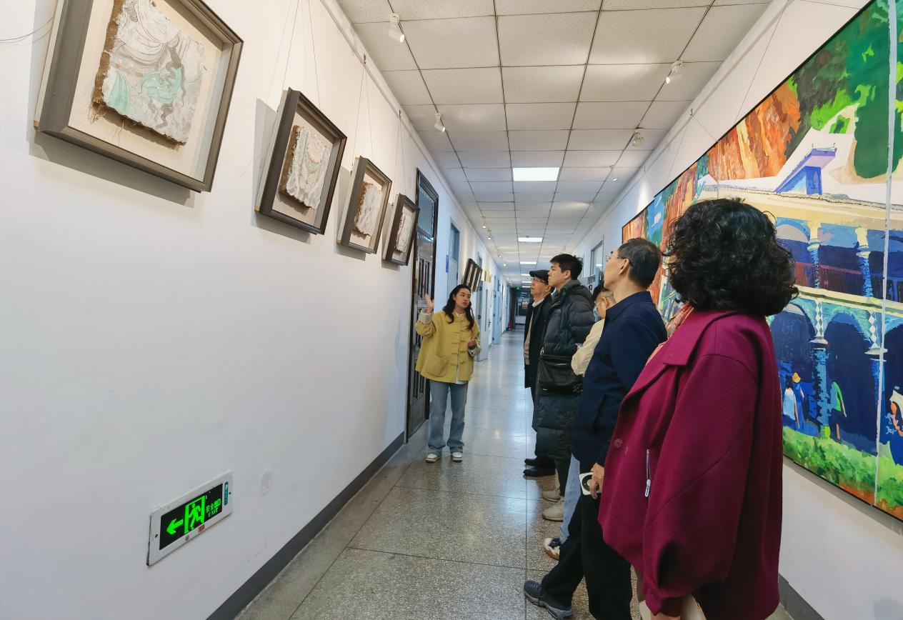 朱安生董事长及随行嘉宾参观了学院的艺术创作空间及学生作品展。参观过程中,朱董事长对学院的艺术教育成果和学生创作水平给予了高度评价,双方就艺术与科技融合、创新人才培养等议题与学院进行了深入交流。